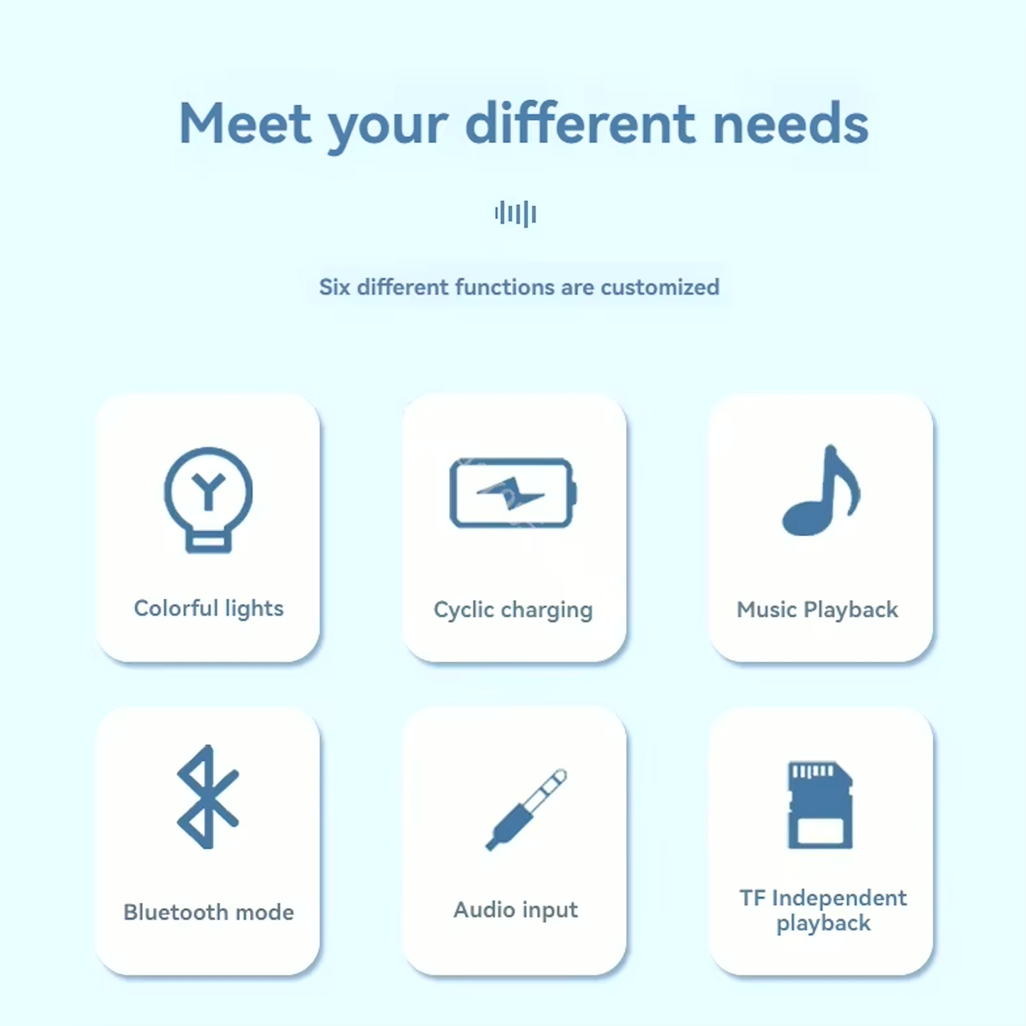 يوفر مكبر الصوت المدمج صوتًا واضحًا وقويًا، مما يتيح لك الاستمتاع بموسيقاك المفضلة أثناء الاستفادة من إضاءة جوية متزامنة.