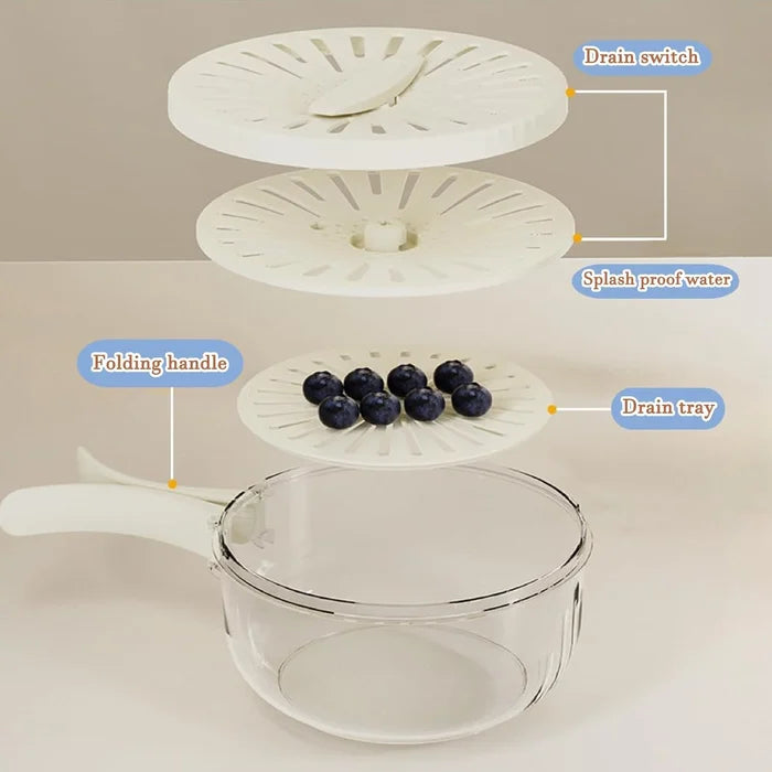 تصميم متعدد الوظائف: وعاءنا المتعدد الوظائف لغسل الفواكه والخضروات مصمم مع مصفاة داخلية قابلة للإزالة للتصفية، وحاوية خارجية شفافة للتخزين، وغطاء محكم للحفاظ على المحتويات طازجة، مما يوفر لك تجربة استخدام ممتعة.