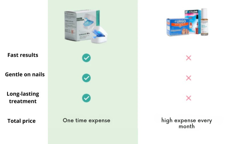 בניגוד לטיפולים קונבנציונליים, המכשיר שלנו מכוון את הפטרייה בעומק כדי להבטיח ריפוי מהיר וארוך טווח.